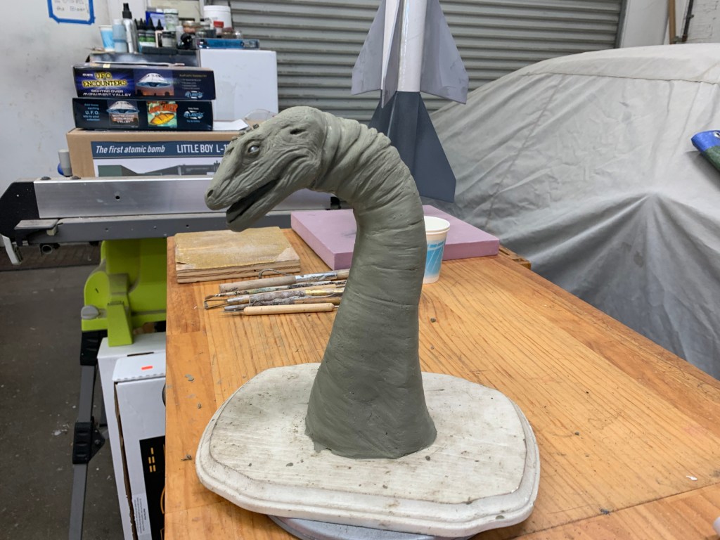 The sculpture is a cross between the puppet and the full sized head. The reason for this is Dave Allen originally had sculpted the stop motion puppet in Roma clay. He hadn’t finished it yet but wanted to give me a copy of the head to sculpt the full size from as a reference.