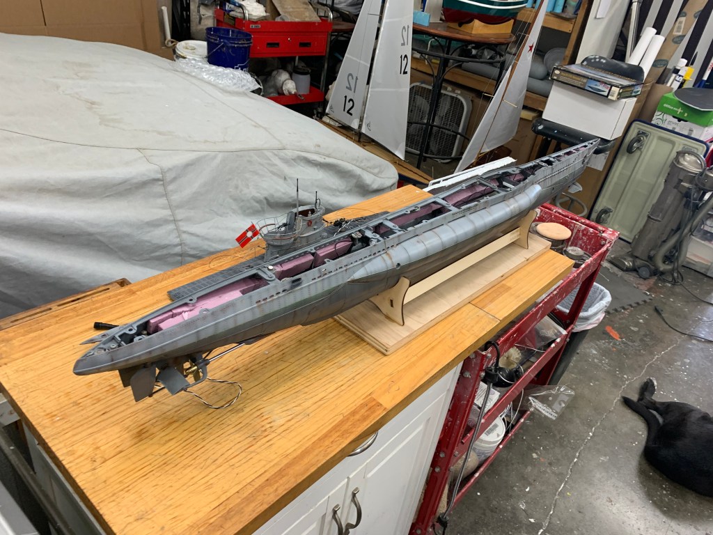 This type 7 U-boat from WW2 has always been a favorite and this model is just the right size and very scale to the actual boat. I placed the cylinder inside the hull yesterday and hooked it all up. She’s ready to dive in Sept. BTW I still have my Seaview! Never will I part with that one.