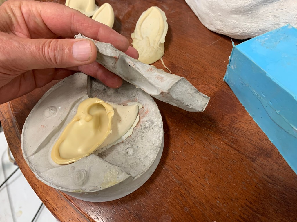 All the masks were nearly completed yesterday with the exception of the teeth which I cast the last pair of before I left the studio. Today the teeth go in and I start packing.