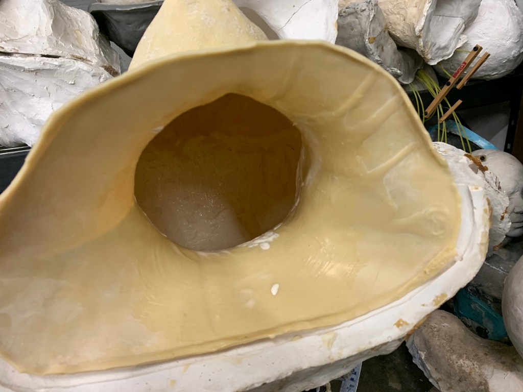 The Sixth Finger mask I put back in the mold and thickened using paper towels and latex. This really thickened up the thin areas and by Monday it should be dry enough to paint.
