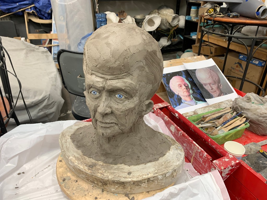 I spent a couple of hours yesterday blocking and roughing out the Talosian lady. It’s very rough but already looks like her. As the clay gets a bit more dried out I’ll be able to fine detail this sculpt and make a mold later next week.