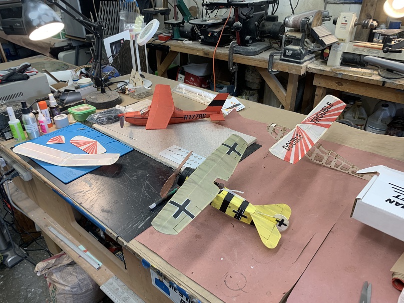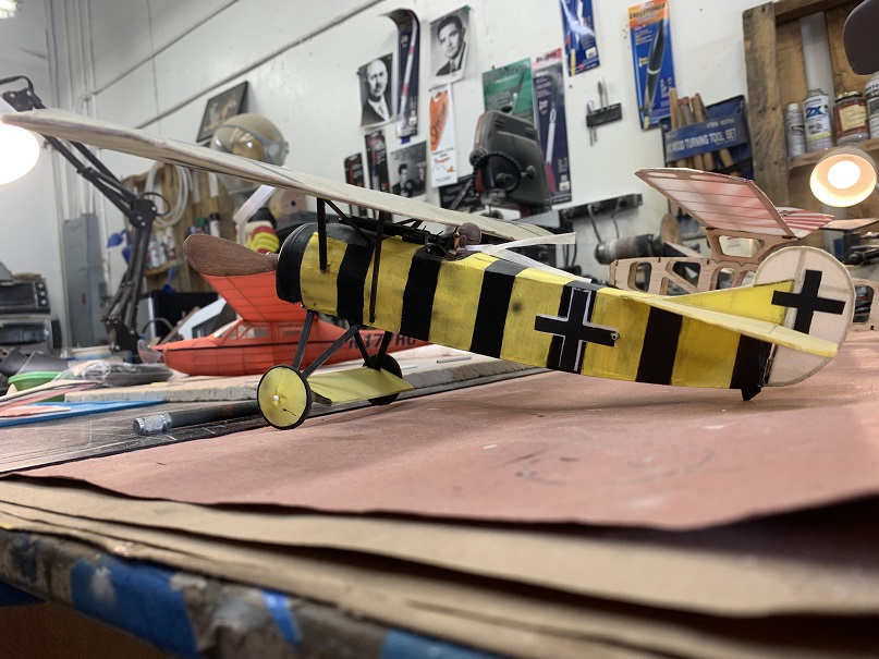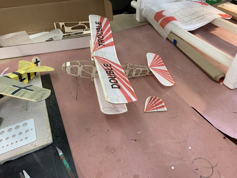 Then I worked on a bit more covering on the Double Trouble free flight airplane. I also went over my free flight Fokker DVIII. I plan to fly this plane and many more at the WESTFACs event in October. http://www.westernfac.com/