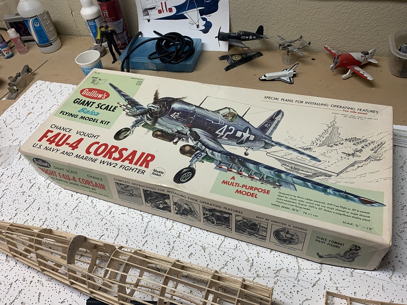 Another plane I’m working on was an old Guillows Corsair. This was given to me by Smith Brothers Hobbies.