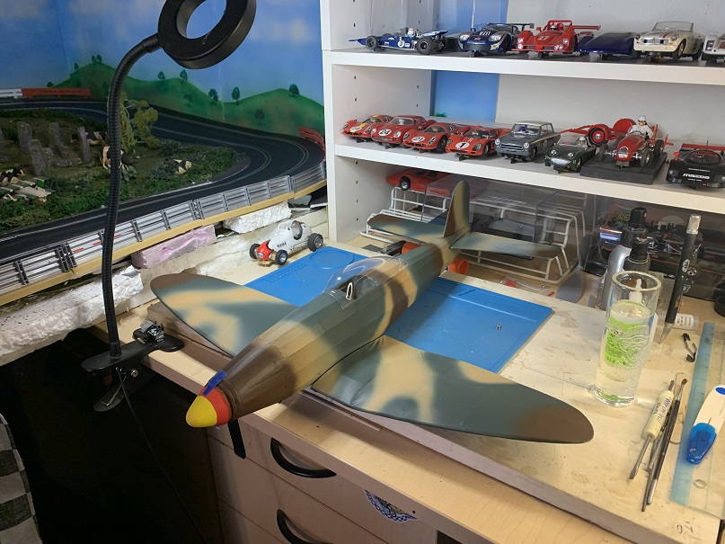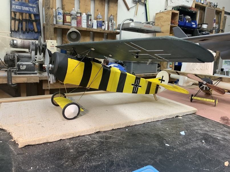 The Westfacs http://www.westernfac.com/ event is in October. I’ve been slowly working on this free flight plane, I managed, between the lines, to get the plane doped and assembled. Today I started airbrushing the paint job. This all takes time. I’ll be making decals printed on tissue and applying them. Adding wing filets. Canopy. panel lines, vents and exhaust all through next week.