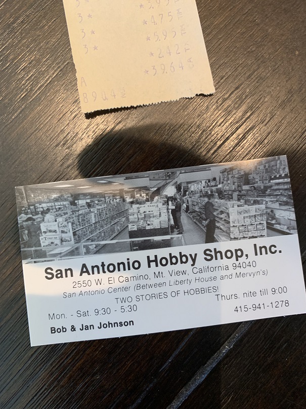 The original receipt was in the box along with a card from the long gone hobby shop.