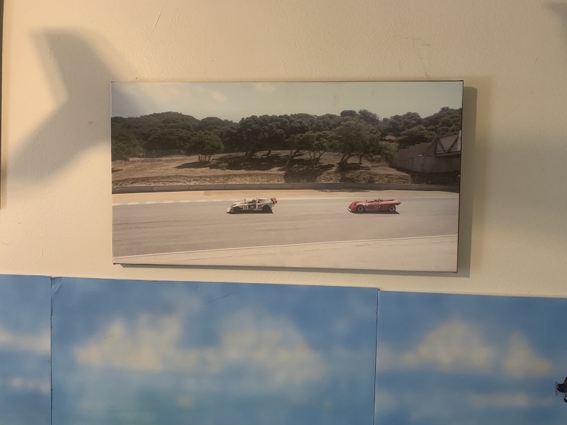 Last Sunday, I was at a birthday party for my dear friend Dr. Chris Landon in Ojai. While there, a print on canvas caught my eye on his wall and I asked about it. It was one of my favorite fond memory spots, Laguna Seca. One of the greatest and most beautiful race tracks in the world.