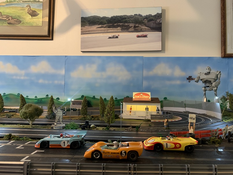 Both are on the wall over my personal slot car race track at home.