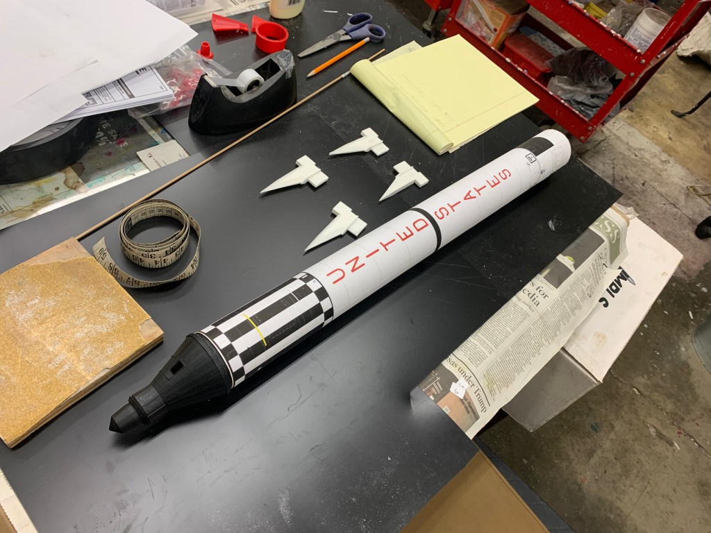 I did have a little time at the end of the day to work on the new Mercury Redstone kit. The prototype is coming along well. No painting here the body tube as paper wraps on it with 3m 77 making the paint job accurate and a bit easier to do.