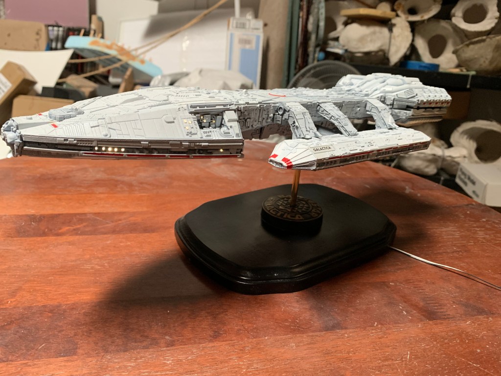 I finished Battlestar Galactica yesterday. She’s a nice ship. Now how to pack this so the shippers don’t harm it. A box inside of a box inside of a box with lots of bubble wrap and foam should do it. 2 Day air is best.
