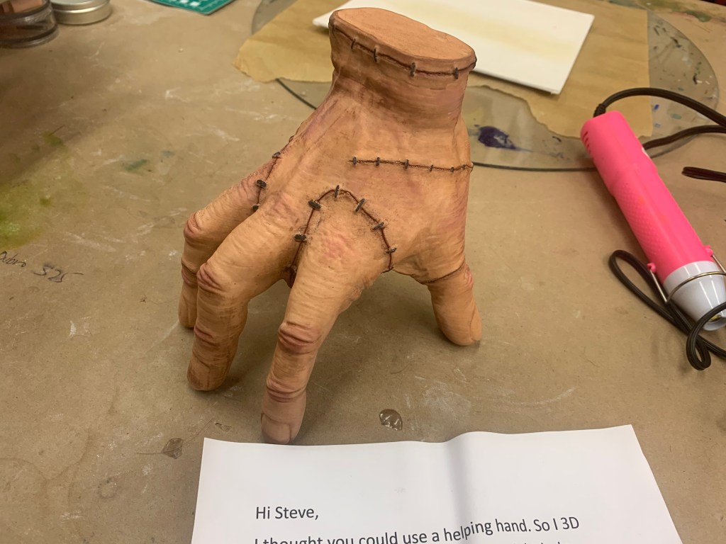 As I unpacked it the first thing I saw was a thumb and then an entire hand. Thing! He sent me Thing. This is the version from “Wednesday” which Mary and I are fans of. In Fact we love anything Adams family.