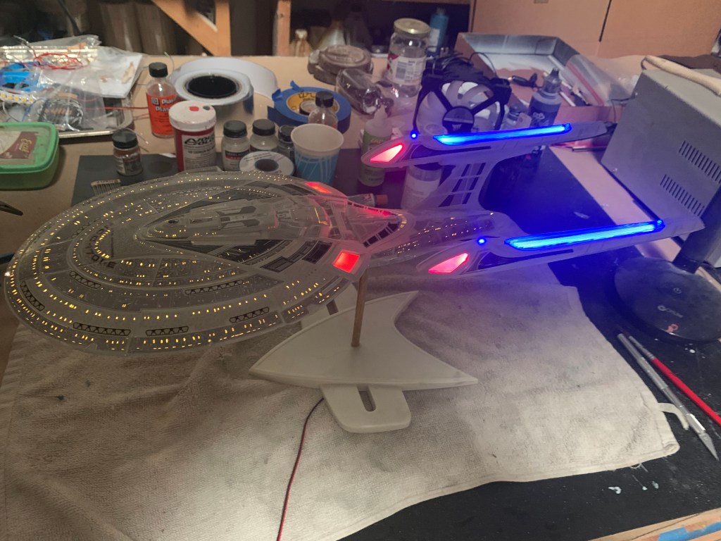 The Enterprise continues. I managed to get more than half the decals on her hull yesterday and will complete them today.