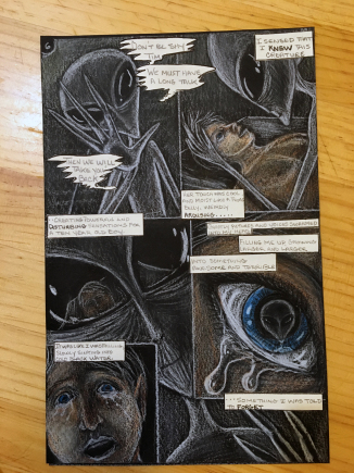 WordPress always loads the pictures backwards so the first picture is the last page of this original all hand drawn prototype for Caliber Comics “Beyond Communion” comic.