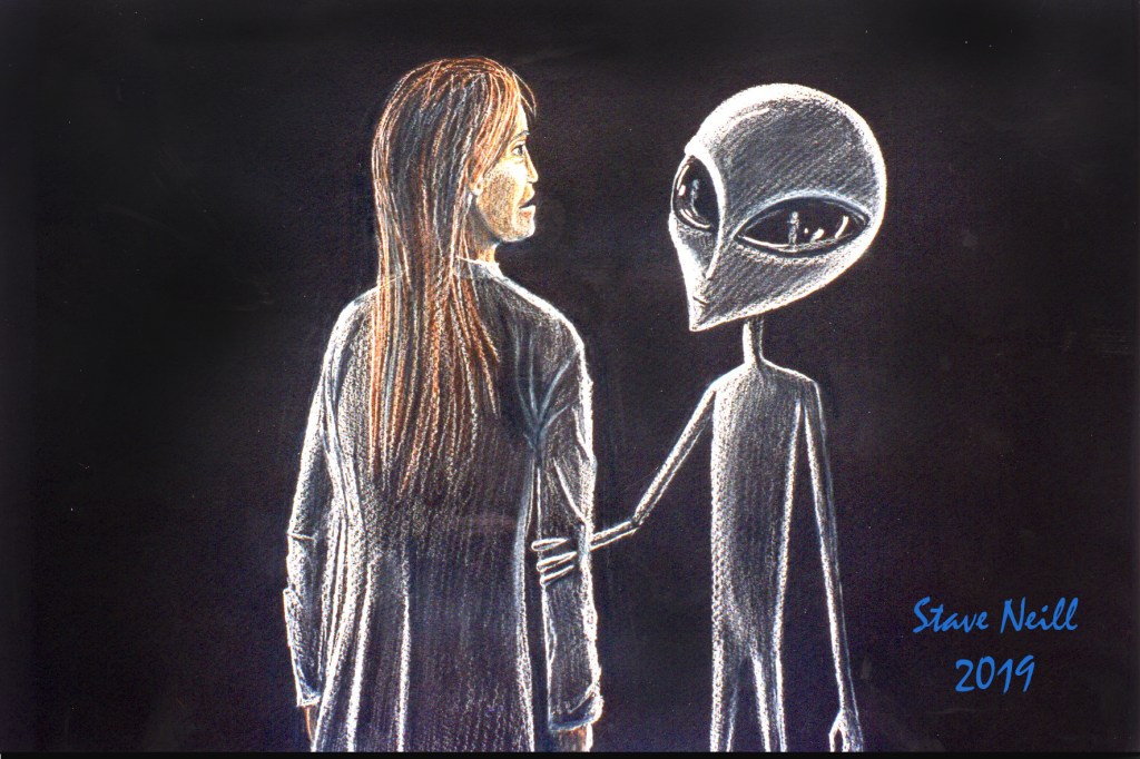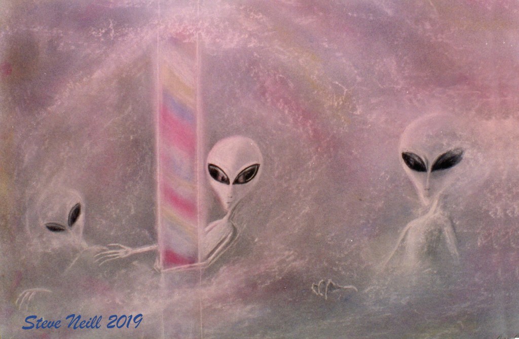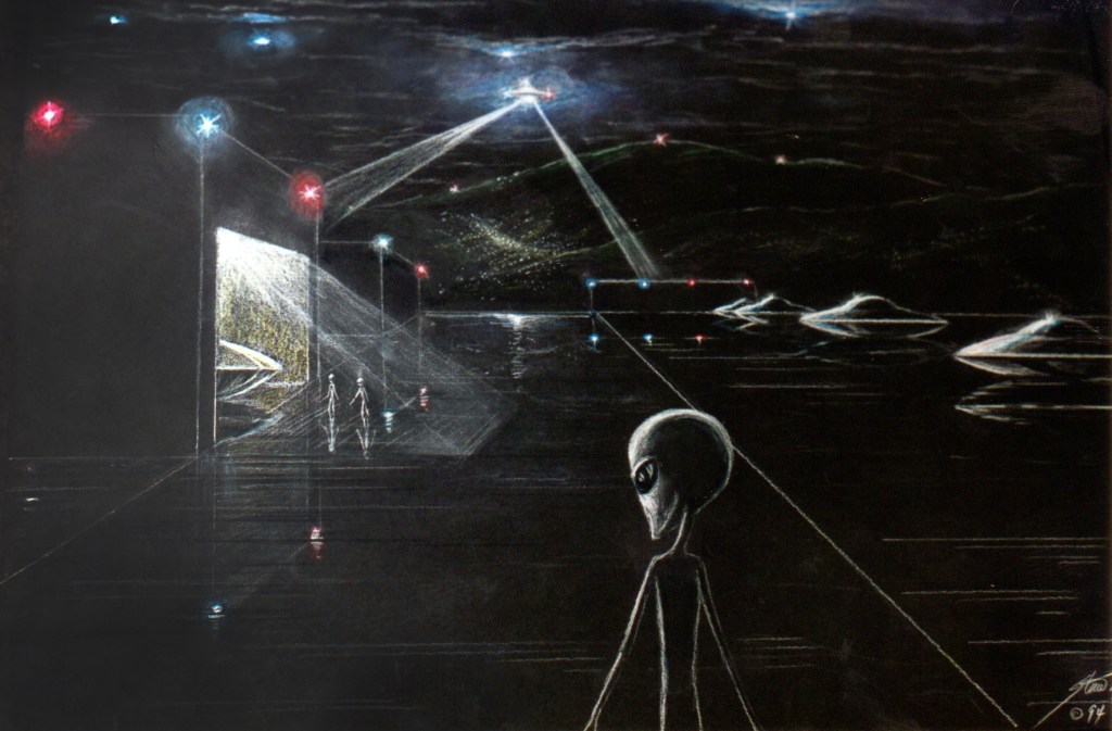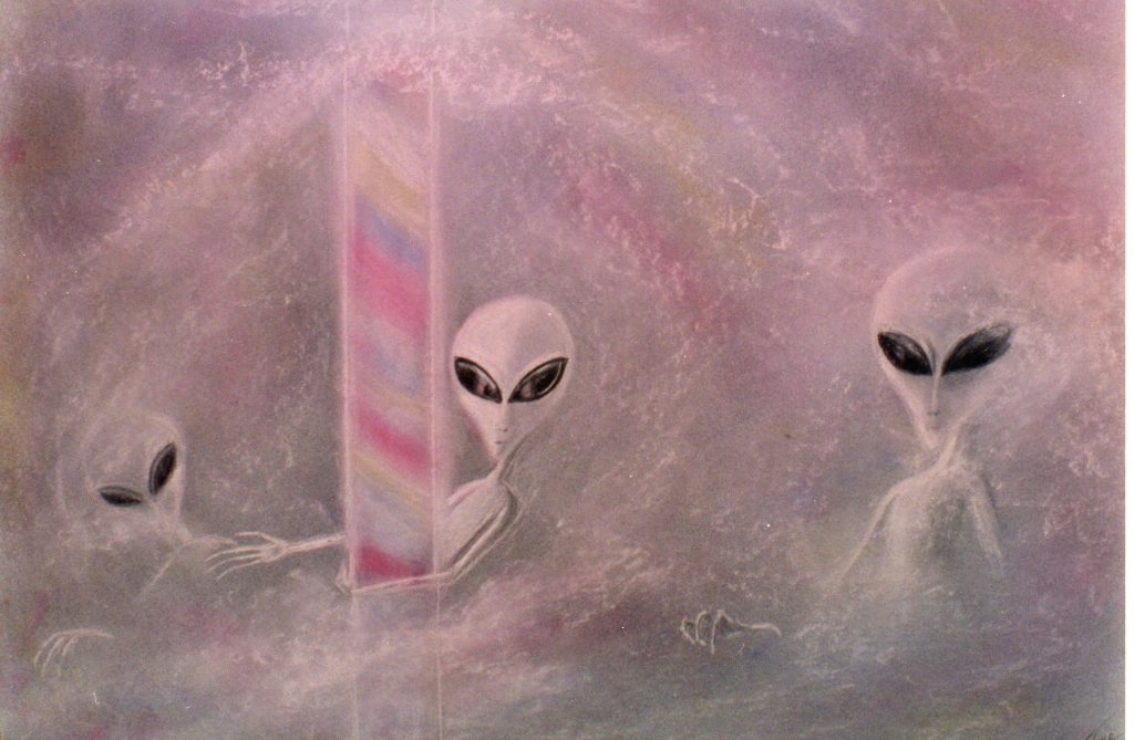 This is the artwork I original made when I started working with Yvonne Smith in 1989. Much of this work was scene around the world and was the first of it’s kind. Emails and phone calls came in from close encounter witnesses asking, “How did I know? It was what they had scene. One of this people was Whitley Strieber who has been a close friend for many years now.