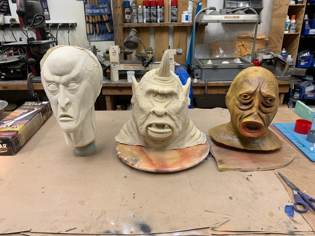 Yesterday was pleasant and quiet. I was able to forge ahead on all these orders. The Masks are all painted, although I have yet to glaze the eyes with epoxy for that glossy look or lay the hair on the Salt Vampire which I’ll do first thing in the morning.