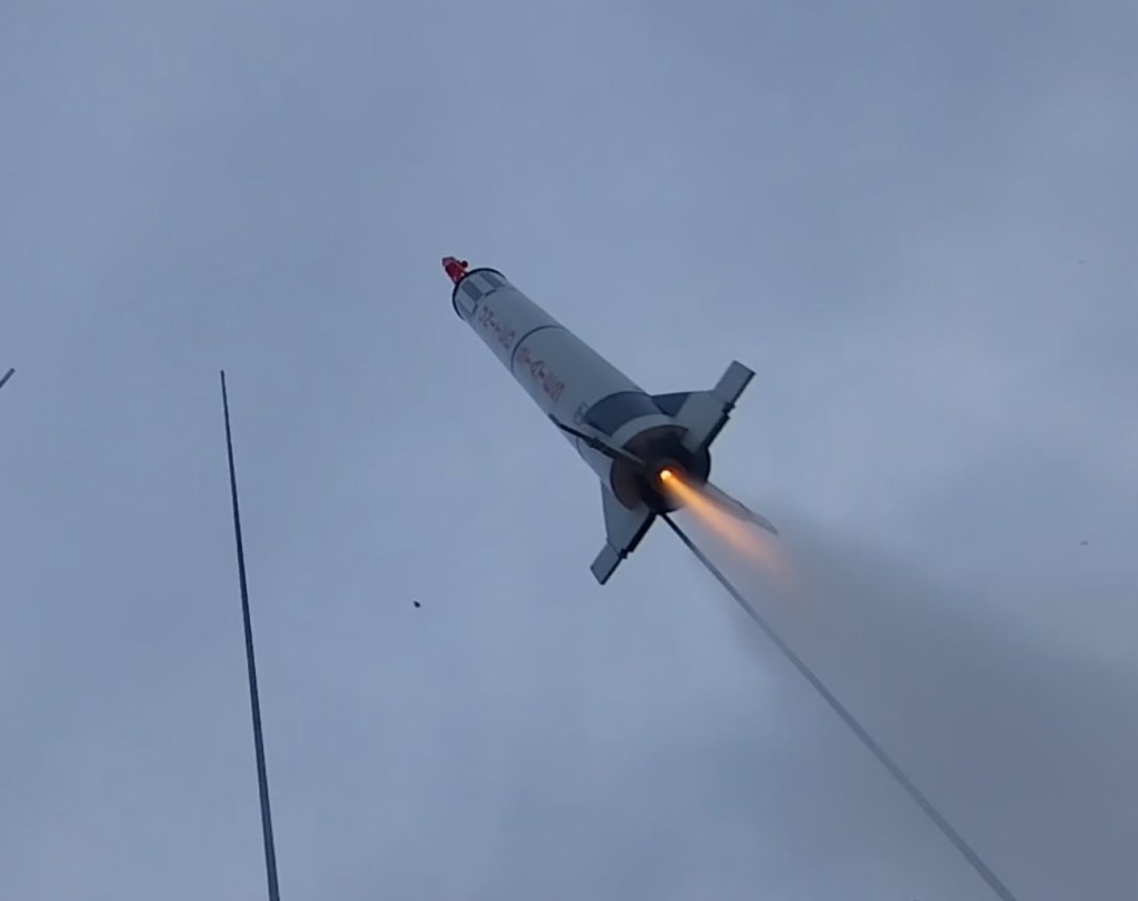The rocket is framed up and over the next few days will be painted and readied for its first test flight in March. It’s designed for a D-E motor and can reach 600-1000 ft or more.