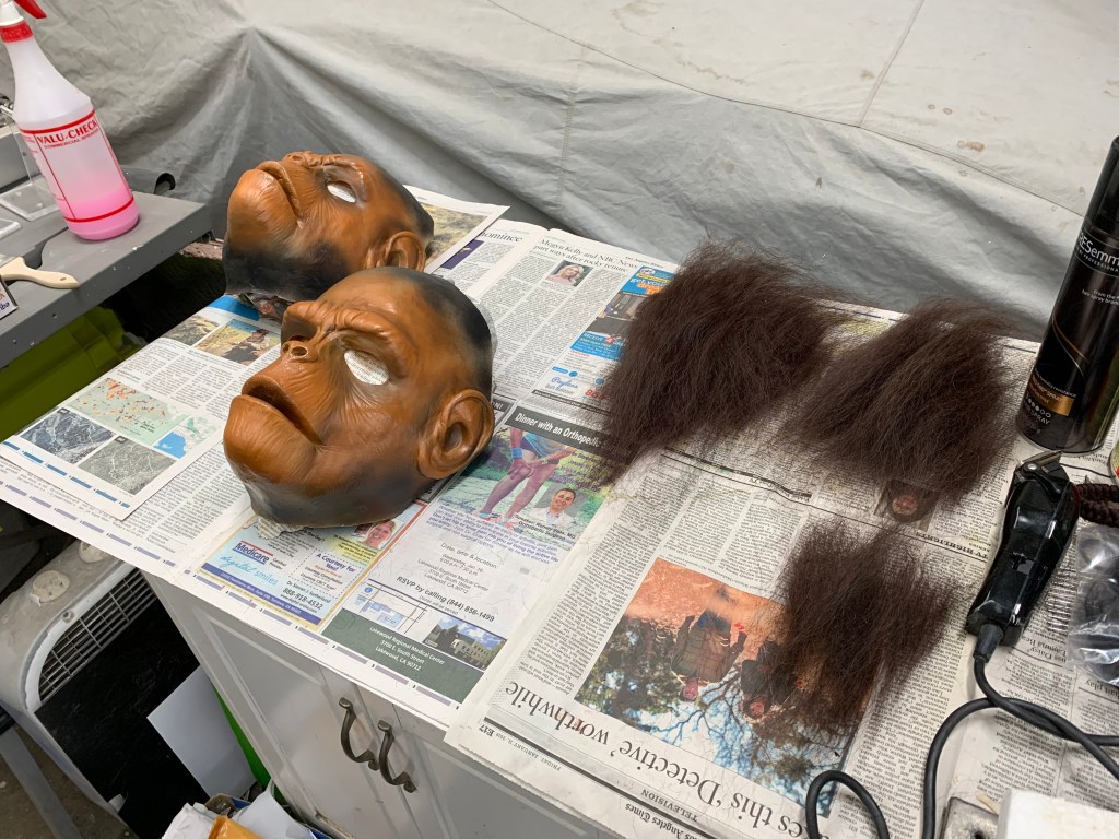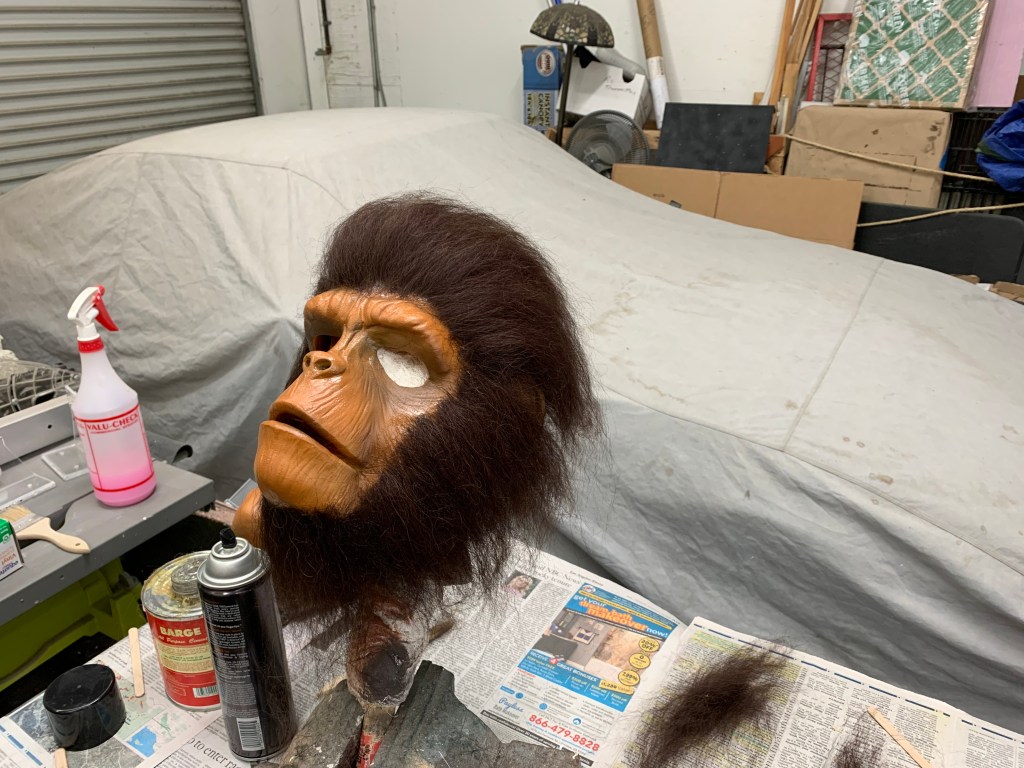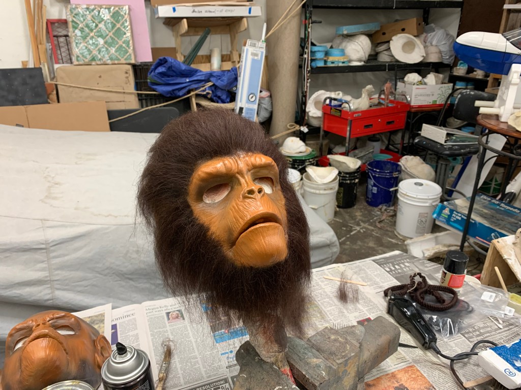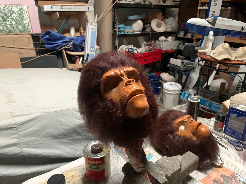 What a wonderful day we had at the studio for Mary’s Birthday. I did all the usual things. I cast more rubber masks. Cast more rocket parts from the new molds. And I laid hair on two Chimps which will ship today.