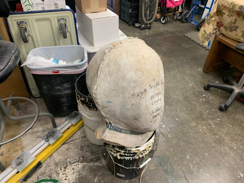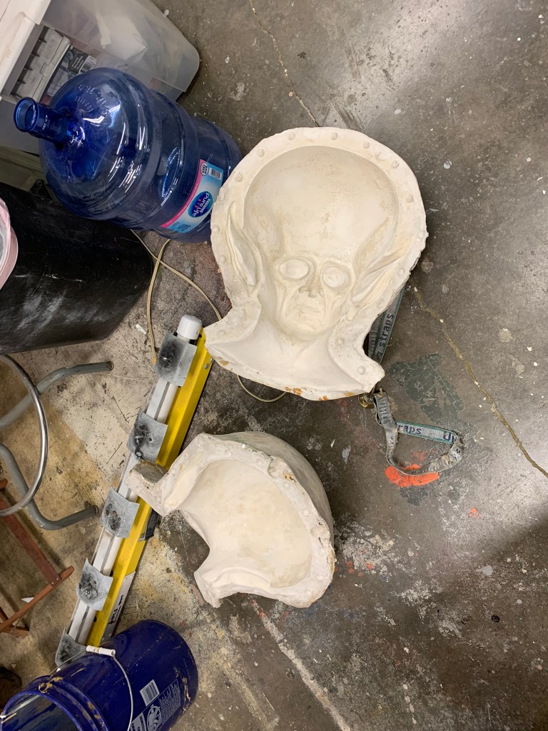Mixed bag of goodies this week. The Sixth finger mask is out of the mold and will take over the weekend to dry out enough to be preened and made ready to paint. I put some two part polyurethane foam in the top of the head so it can be worn.