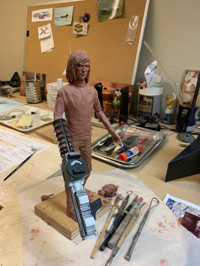 I am back to work on the 1/6th Laser Blast figure of myself from the opening of the film. I will only make 25 of these. Cast in resin, hand painted, 3D printed gun and standing on a base.Each one signed and numbered by me. We are taking preorders. Be prepared to wait a few weeks for delivery as I make each one up as I get the order.